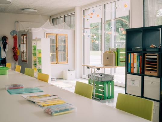 Wir verfügen über eine «Chillecke» im Neubau. Dies erlaubt den Kindern sich bei Bedarf etwas zurückzuziehen und einer ruhigen Aktivität nachzugehen.